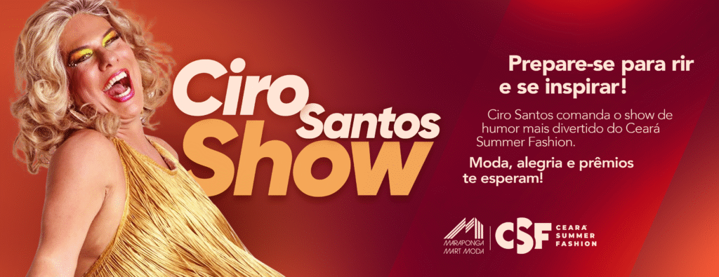 No dia 20 de outubro, às 14h, no Lounge MMMODA, o Ceará Summer Fashion 2025 traz uma atração especial para as revendedoras: o Show de Humor com Ciro Santos, um dos maiores nomes do humor cearense, com mais de 30 anos de carreira nos palcos, na TV e em eventos pelo Brasil e exterior.